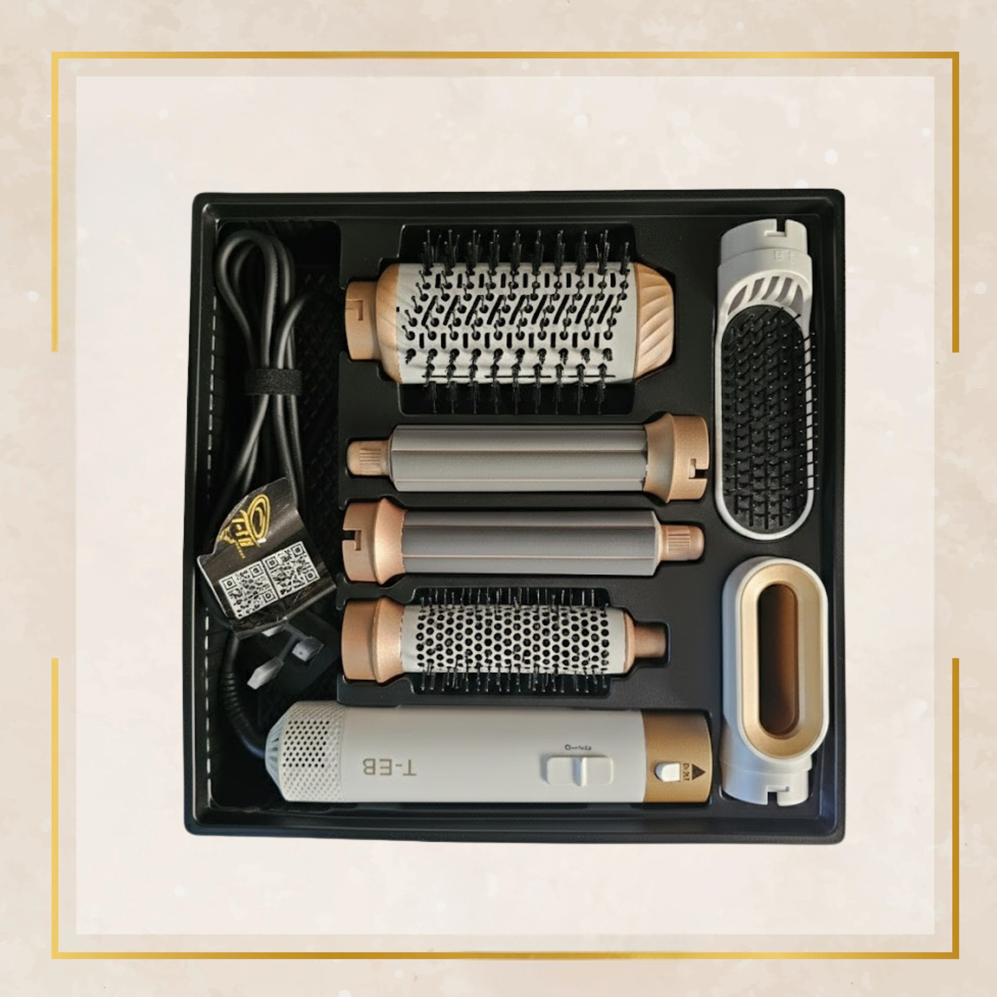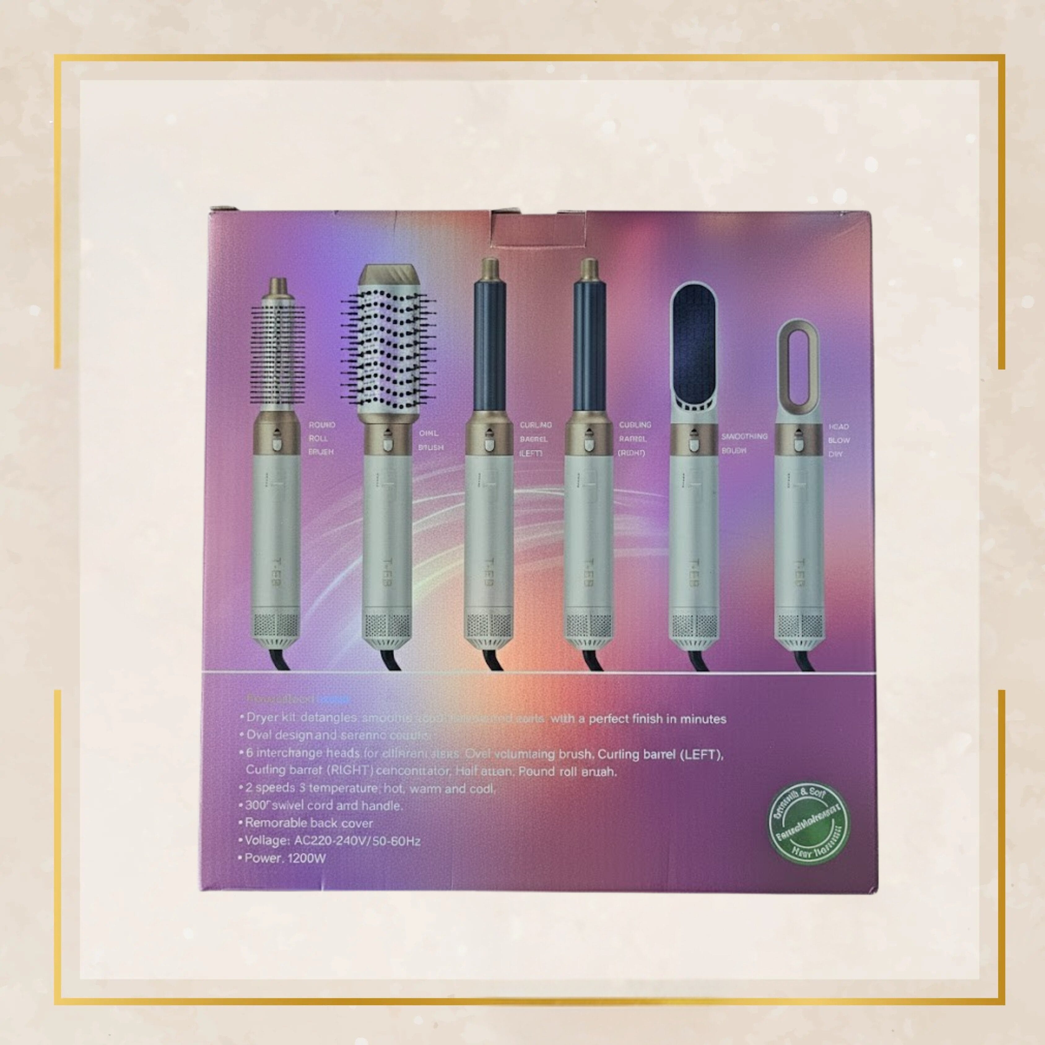 اجمل حاجه بييجي معاها 6 رؤوس تقدري تعملي بيهم كل حاجة تقريبًا تجفيف، فرد خفيف، كيرلي يمين وشمال، ورفع من عند الجذور الميزة الحلوة إنه بيشفط الخصلة حوالين الأسطوانة لوحده، فالموضوع سهل ومش محتاج مجهود